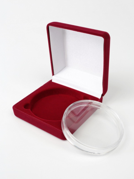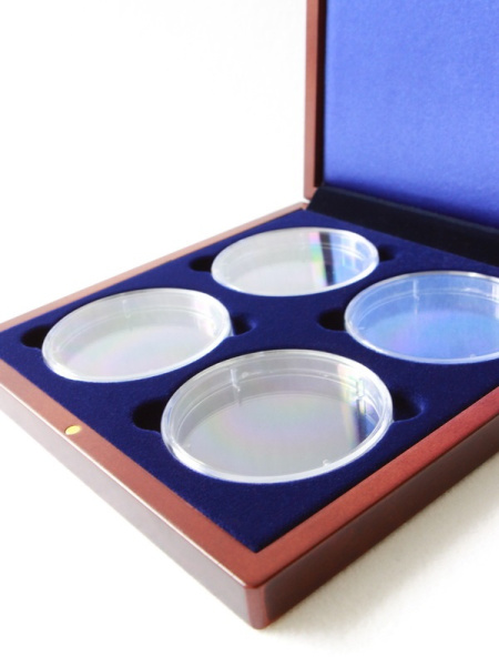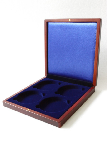 Деревянный футляр Volterra (100х100х32 мм) для одной монеты, медали в капсуле (диаметр 74 мм). Синий