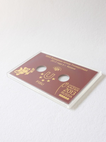 Среди огромного ассортимента аксессуаров для нумизматов особое распространение получили буклеты для хранения монет. Этот предмет представляет собой пластиковую прозрачную коробку, состоящую из двух половинок, внутри которой вложена картонная вставка с отверстиями под монеты. Дизайнерская картонная вставка содержит характерное для каждой коллекции изображение или надпись. Например, на буклете для монет ЦБ РФ, посвященных 27-ой Всемирной летней Универсиаде 2013 в Казани, нарисован символ этого спортивного события и нанесены соответствующие надписи.