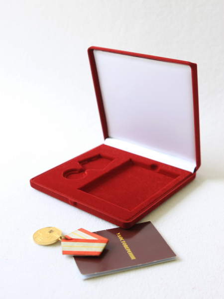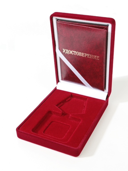 Футляр (186х192х50 мм) с поролоновой вставкой под универсальную медаль и удостоверение (81х112х6 мм)