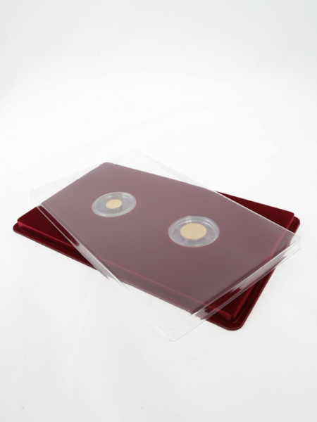 Монета в капсуле, размещенная на планшете под прозрачной пластиковой крышкой, имеет отличный обзор. При этом нумизматические экземпляры приобретают эффективную защиту от попадания влаги, пыли, механических повреждений.