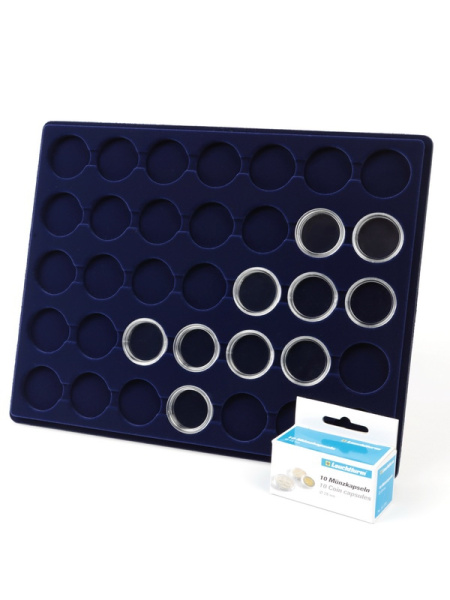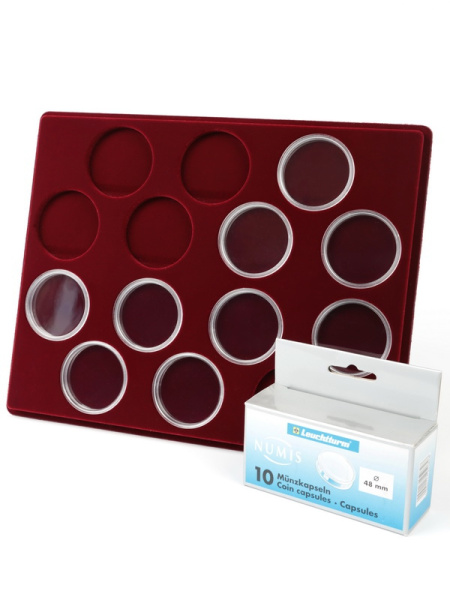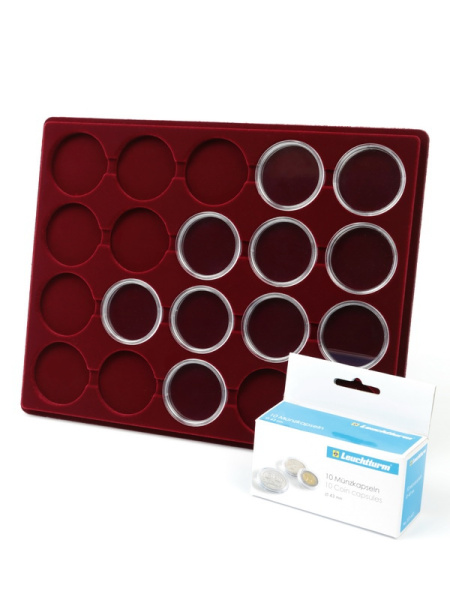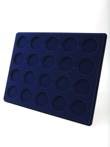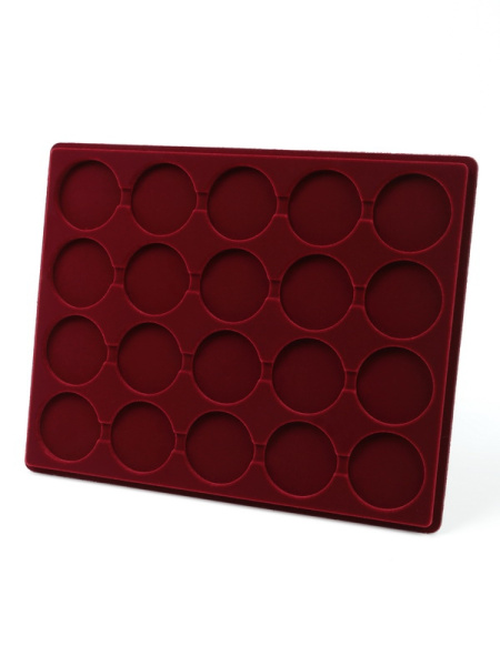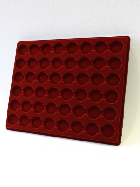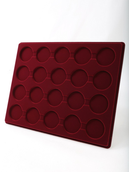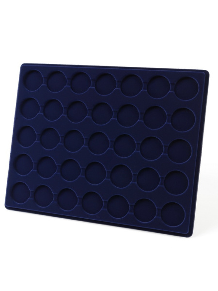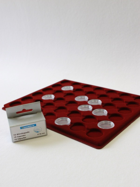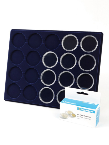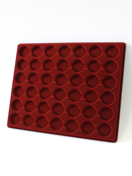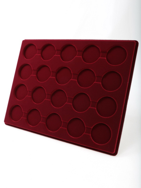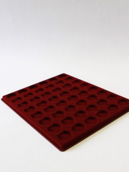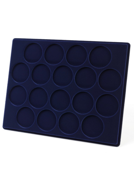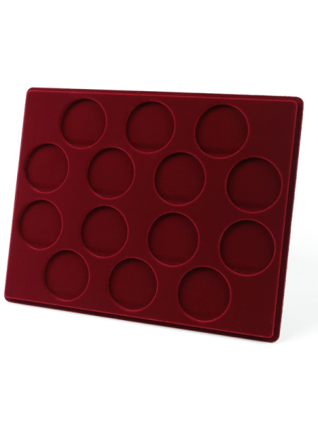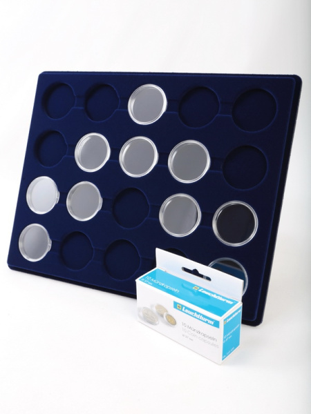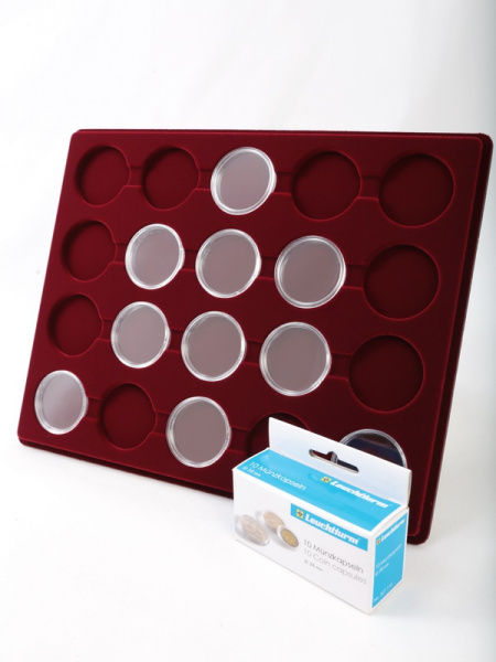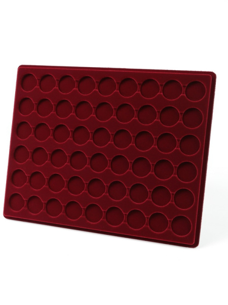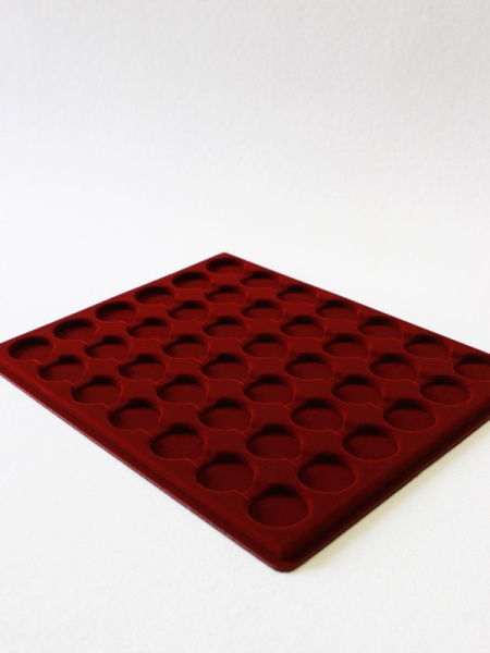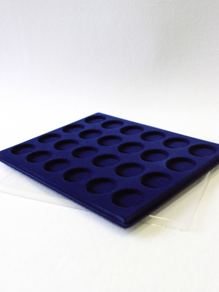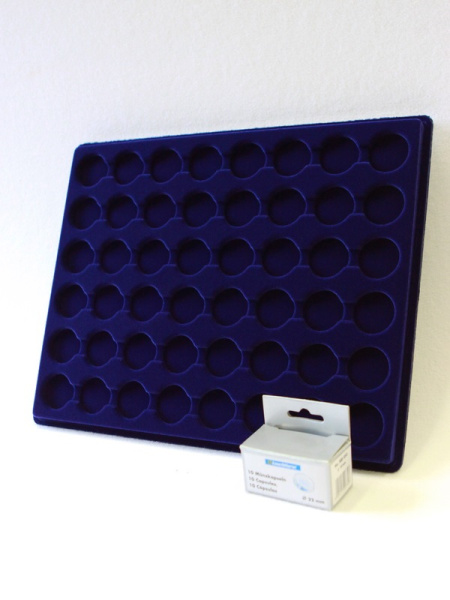 Планшеты с круглыми ячейками для монет в капсулах позволяют разместить внутри до нескольких десятков коллекционных экземпляров. Число предметов, которые могут находиться в планшете, определяется параметрами внешнего диаметра капсул. Одна упаковка способна вместить от 3 до 80 монет.