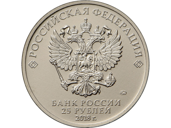 Памятная монета 25 рублей с цветным изображением. Талисман Чемпионата мира по футболу FIFA 2018 года