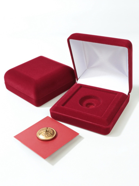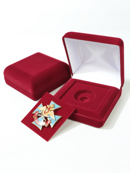 Футляр предназначен для ордена с пятиугольной колодкой. Размер подвеса (ордена): не более 45х45 мм