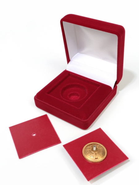 Флокированный футляр с ложементом для одной монеты, медали. Диаметр углубления 40 мм, толщина углубления 6 мм