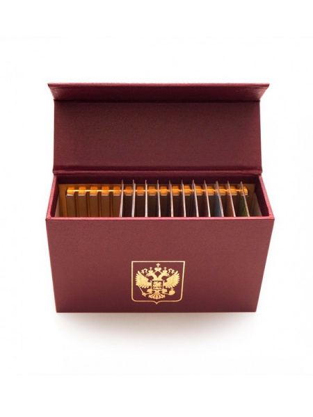 Деревянный футляр Volterra Smart (252х204х32 мм) для 12 монет в капсулах Quadrum (50х50х6 мм). Синий