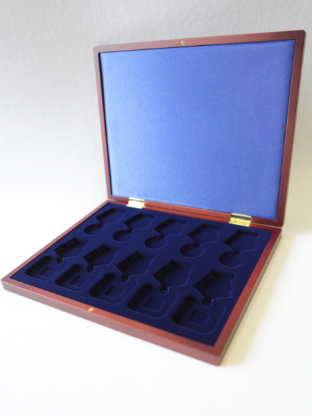 Футляр предназначен для хранения 10 монет в капсулах. Диаметр капсулы: 46 мм