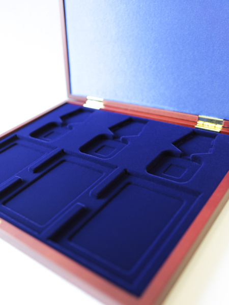 Футляр предназначен для хранения 5 орденов на пятиугольной колодке. Размер подвеса (ордена): не более 47х47х7 мм