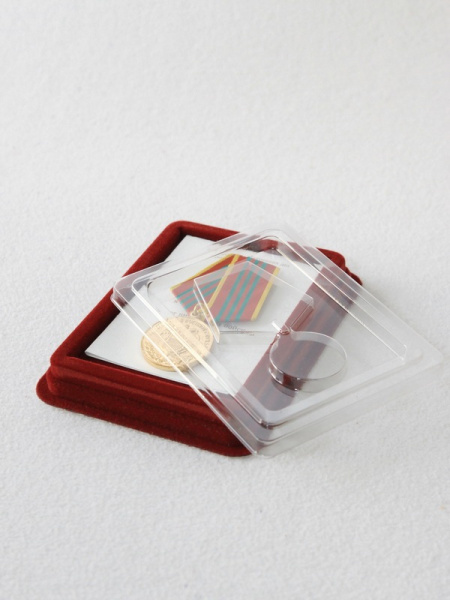 Упаковка предназначена для медали РФ на пятиугольной колодке. Размер подвеса (медали): не более 32 мм