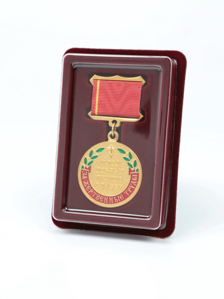Футляр предназначен для медали РФ d-32 мм с пятиугольной колодкой