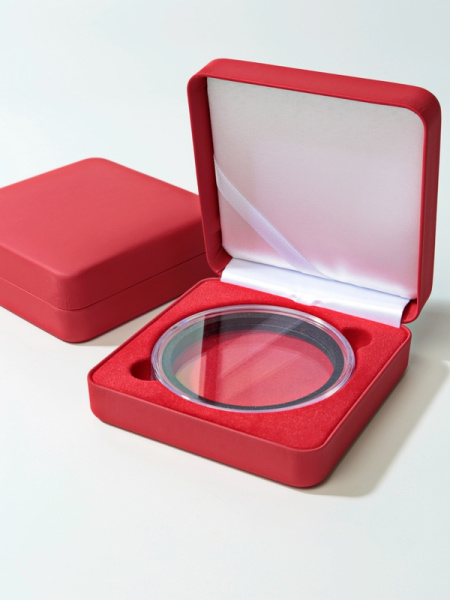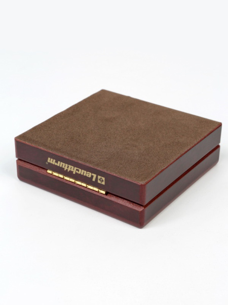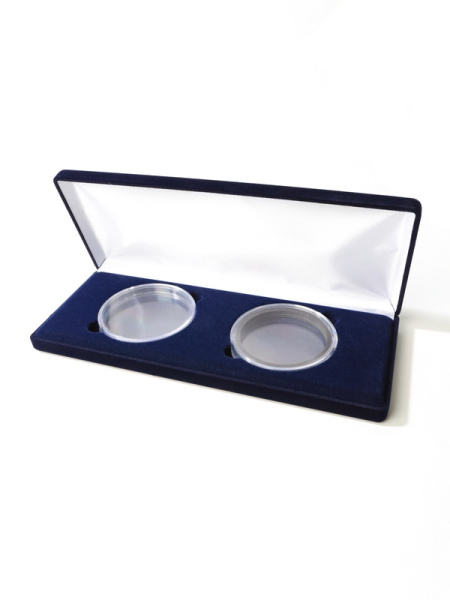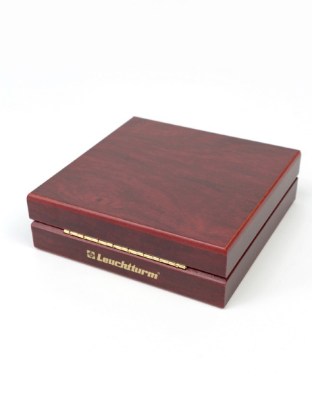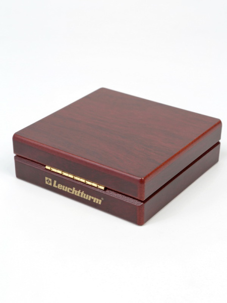 Деревянный футляр Volterra (100х100х32 мм) для одной монеты, медали в капсуле (диаметр 74 мм). Синий