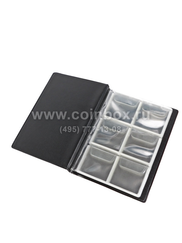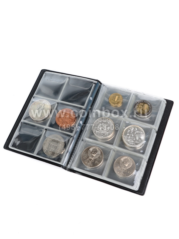 Карманный альбом с прозрачными листами с клапанами (кармашками) для хранения 60 монет диаметром до 41 мм. Идеально подходит для транспортировки вашей коллекции и демонстрации ее на ярмарках, выставках, встречах коллекционеров.