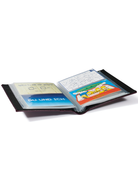 - Размерами. Каждый альбом с защитной обложкой может иметь формат под разные предметы коллекционирования. В ассортименте представлены относительно небольшие карманные альбомы для открыток с автографами стандартных размеров, альбомы усредненных размеров, а также альбомы для больших конвертов и коллекционных материалов (наиболее популярные серии Folio, Maximum, Kanzlei).