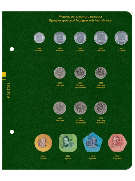 Карманный монетный альбом для размещения 84 монет с комбинированными ячейками, Зелёный, СомС, Россия