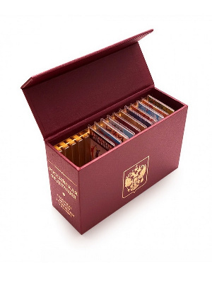 Бокс выполнен из плотного качественного картона оклеенного ледерином. Все изображения на нём нанесены методом горячего тиснения, что гарантирует их высокую стойкость.