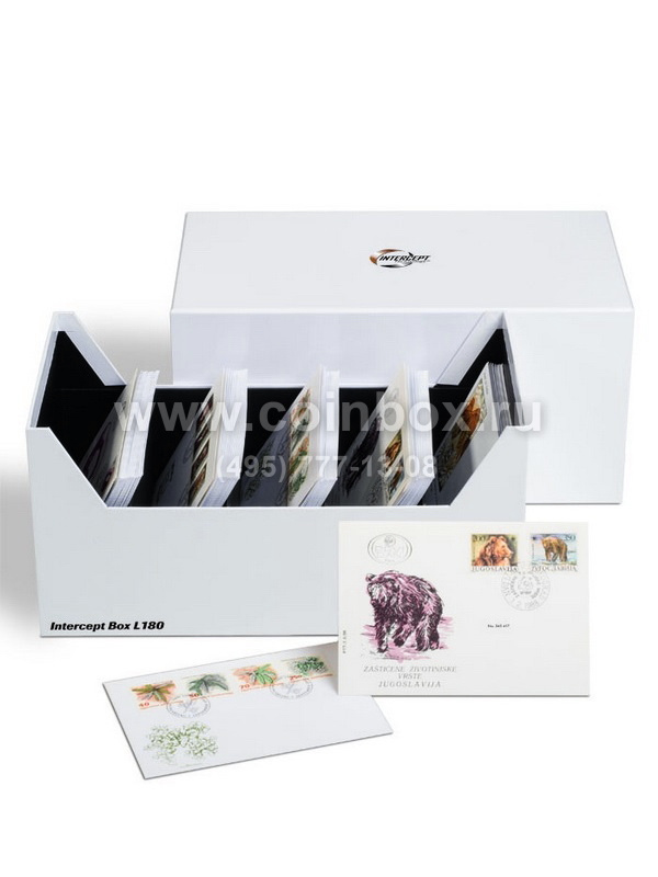 Внутренняя поверхность бокса L 180 выложена материалом Intercept, который активно защищает Ваши предметы коллекционирования от старения и окисления. Предназначен для защиты монет, медалей и бумаги.