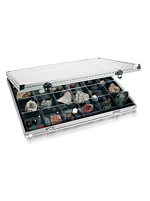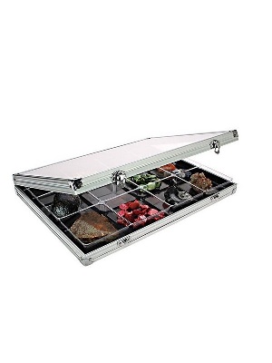 Витрина оснащена усиленными металлическими уголками и двумя замками.