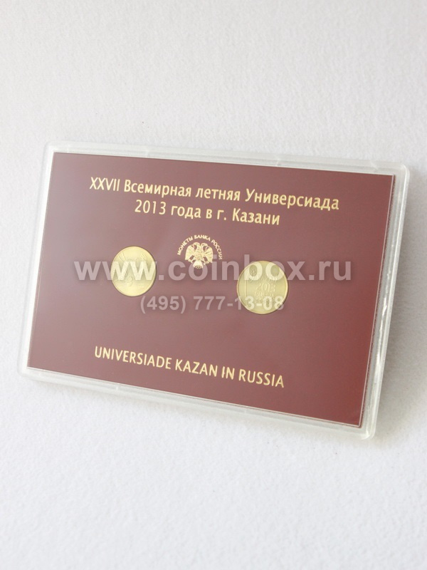 Буклет содержит набор памятных монет Центрального Банка Российской Федерации, посвященных "XXVII Всемирной летней Универсиаде 2013 года в г. Казани", 2013 года выпуска