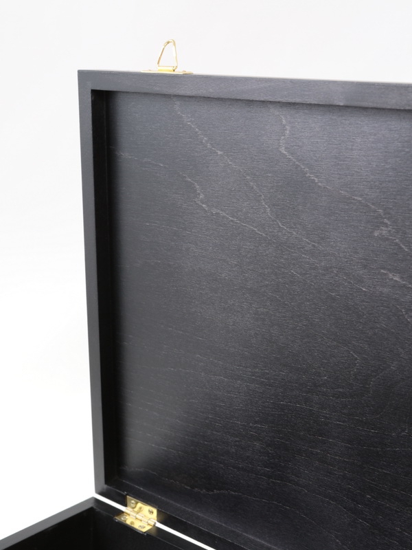 Затемненная поверхность бокса придает футляру выразительность и благородный внешний вид. Через покрытие слегка видна фактура и рисунок дерева.