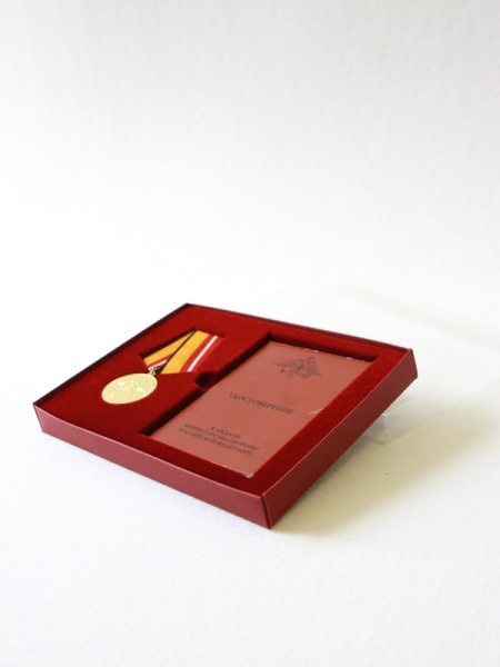 Упаковка предназначена для медали РФ на пятиугольной колодке. Размер подвеса (медали): не более 32 мм