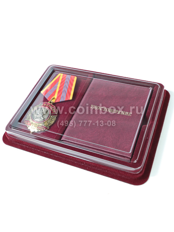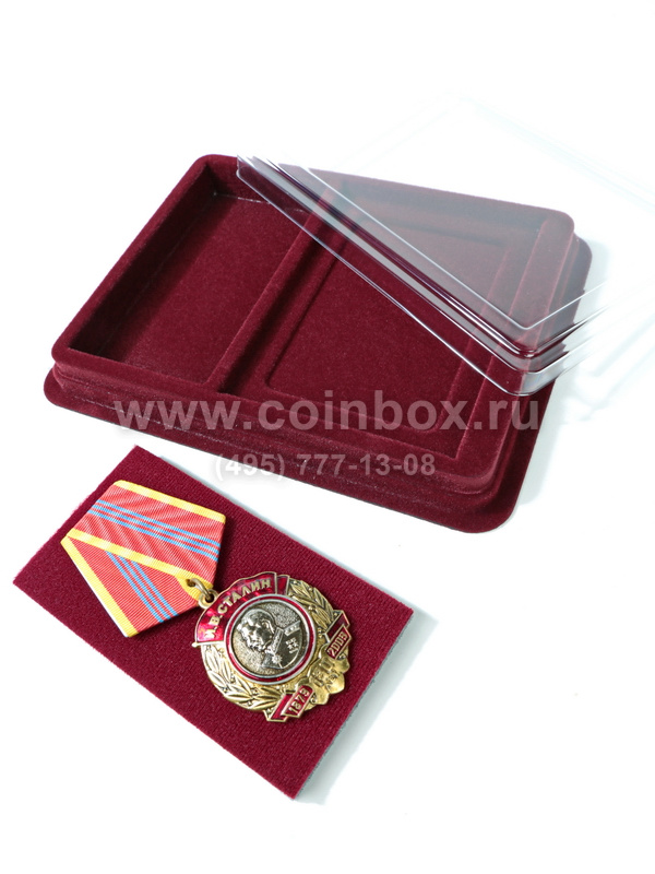 В упаковке сделаны два углубления. В одно углубление вложена вставка из флокированного поролона, к которой вы можете приколоть всевозможные медали, а второе углубление сделано для удостоверения.