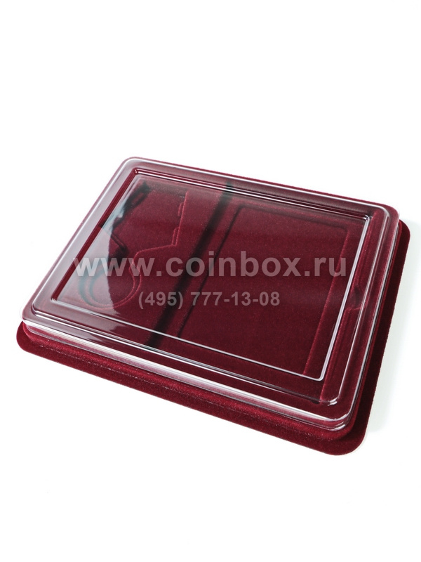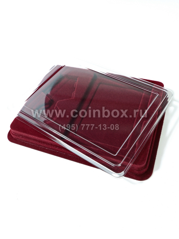 Верхняя часть упаковки выполнена из флокированного пластика, снизу к упаковке приклеен белый глянцевый картон. Готовый футляр сверху накрывается прозрачной пластиковой крышкой