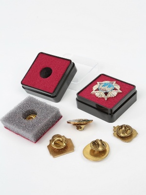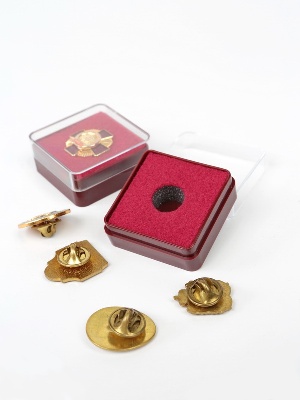 Футляр идет в комплекте с поролоновой подушкой. Подушка имеет сквозное отверстие для цангового крепления. Процесс комплектации значков очень прост - вам необходимо положить значок в коробку и закрыть крышку.
