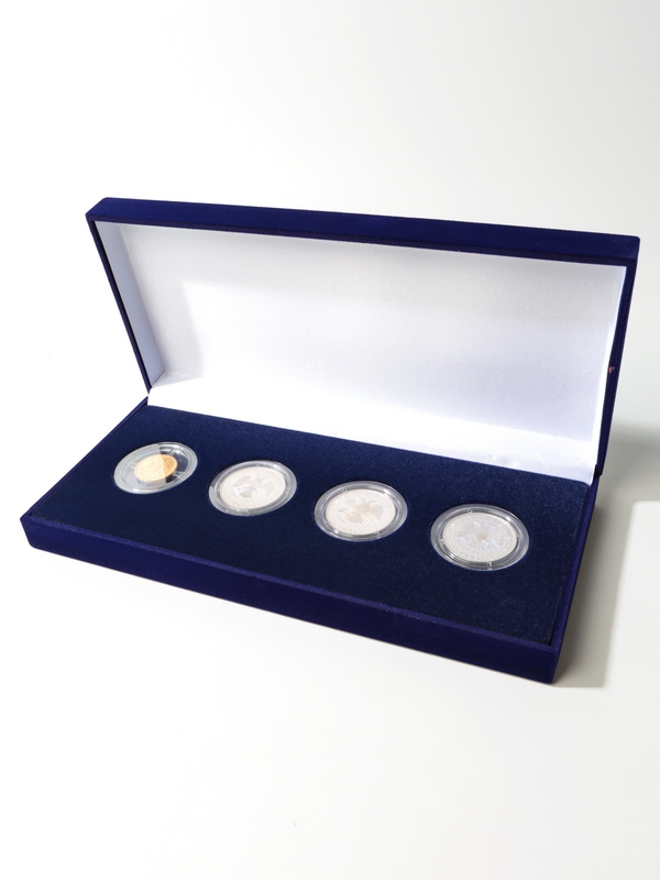 Футляр предназначен для 4 монет в капсулах. Внешний диаметр капсул 44 мм