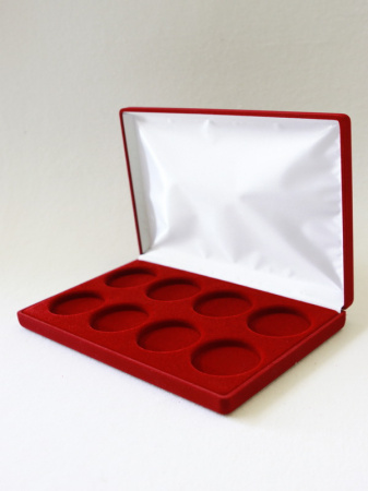 Футляр предназначен для 8 монет в капсулах. Внешний диаметр капсул 46 мм