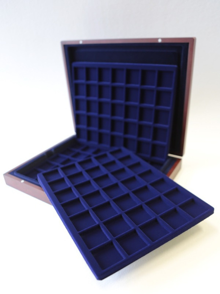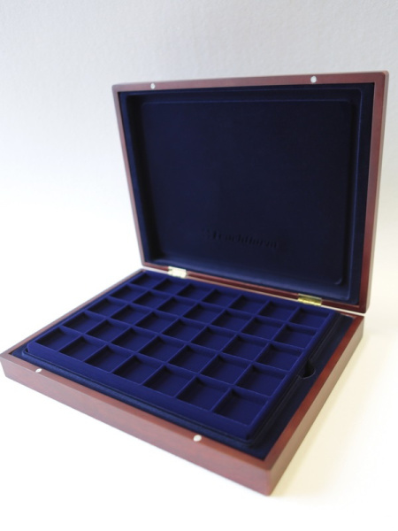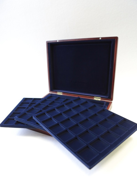 Деревянный футляр с 3 вставками для хранения 36 монет, медалей, жетонов. Подходит для монет, медалей в капсулах и без них