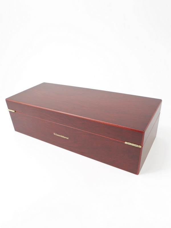 На задней стороне футляра/бокса нанесен логотип компании Leuchtturm, выполненный золотом.