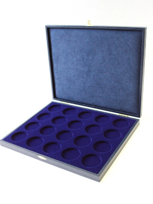 Футляр предназначен для хранения набора из 20 монет в капсулах. Внешний диаметр капсул 44 мм