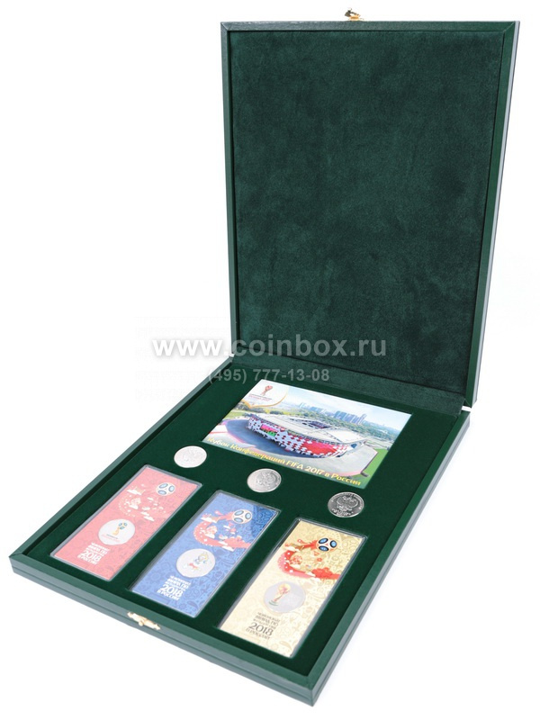 Подходит для хранения серии монет, посвященных проведению в Российской Федерации чемпионата мира по футболу FIFA 2018 года и Кубка конфедераций FIFA 2017 года