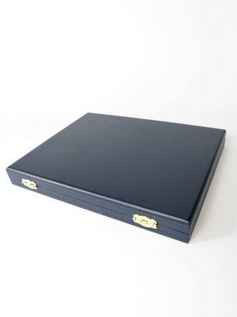 В футляр изготовлен ложемент для хранения набора монет в капсулах.
