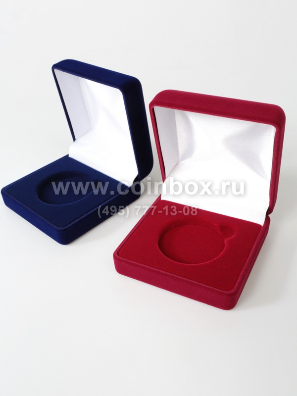 Флокированный футляр с ложементом для одной монеты в капсуле. Внешний диаметр капсулы 44 мм