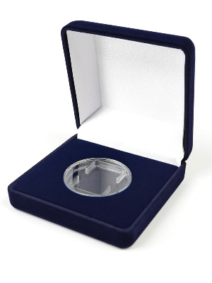 Флокированный футляр с ложементом для одной монеты в капсуле. Внешний диаметр капсулы 46 мм