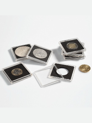 Квадратные пластиковые капсулы для монет имеют единый внешний размер - 50х50х6,25 мм. Вы можете разместить различные по диаметру монеты в одной системе (боксе, футляре, планшете, кассете, альбоме). Капсулы имеют точно подходящие по форме вкладыши для всех ходовых монет диаметром от 14 мм до 41 мм.