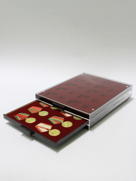 Кассета XXL с поролоновой вставкой синего цвета для медалей, орденов, значков, эмблем. Lindner, 2459
