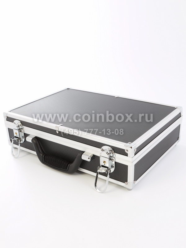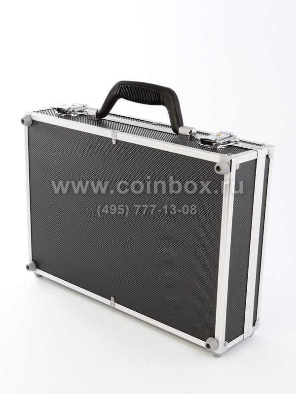 Нумизматический кейс в элегантном дизайне чёрного цвета имитирующем алюминий.