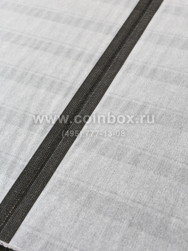 Внутри альбома находятся 16 листов (32 страницы), изготовленные из черного картона с прозрачными полосками (9 полосок из прозрачного пластика на каждой странице).