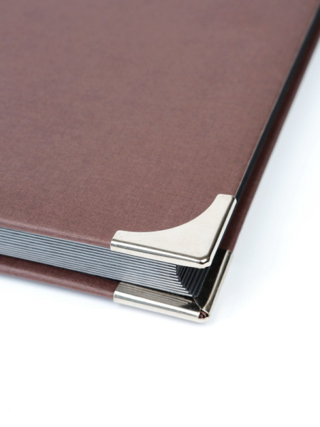 А на белых страницах используются непрозрачные пергаминовые клеммташи, которые выглядят более традиционно, но менее удобно при просмотре коллекции.