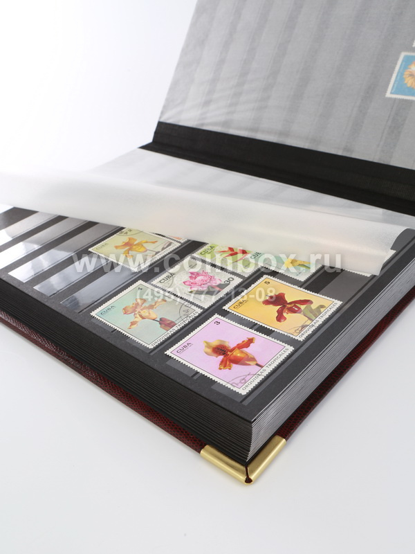 Высококачественный кляссер формата А4. Особую прелесть и изящество кляссеру придает ватированная обложка под крокодиловую кожу защищенная металлическими золотыми уголками.
