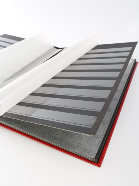 Кляссер PREMIUM с ватированным переплетом из регенерированной кожи (85% натуральной кожи) и тиснением золотого цвета послужит благородным обрамлением коллекции. 64 страницы из черного картона с 9 прозрачными полосками на каждой странице из специальной защитной пленки, не содержащей химических смягчителей. Двойные прозрачные промежуточные листы, надежное соединение двойной проволочной петлей.