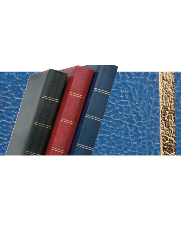 Твёрдая обложка кляссера имеет зернистую поверхность. На корешке и лицевой стороне альбома выполнено высококачественное тиснение золотом.