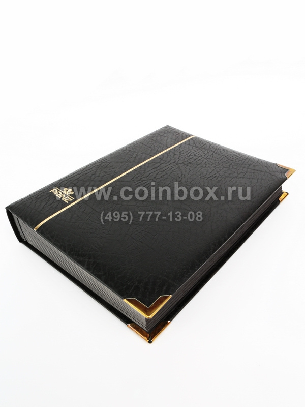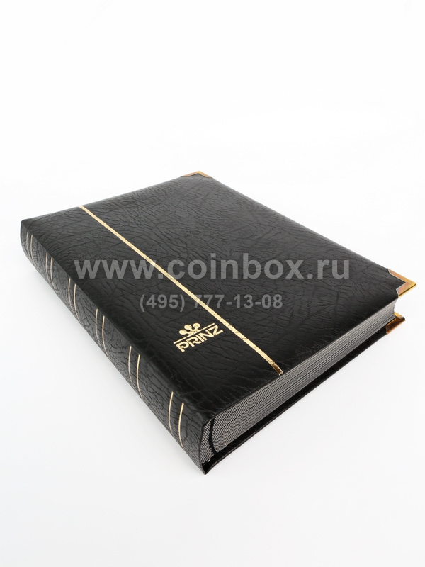 Ватированная (мягкая) обложка кляссера изготовлена из натуральной кожи. Позолоченные защитные уголки и тиснение золотом на корешке и обложке придаёт особенно элегантную ноту кляссерам серии ROYAL от компании Prinz.