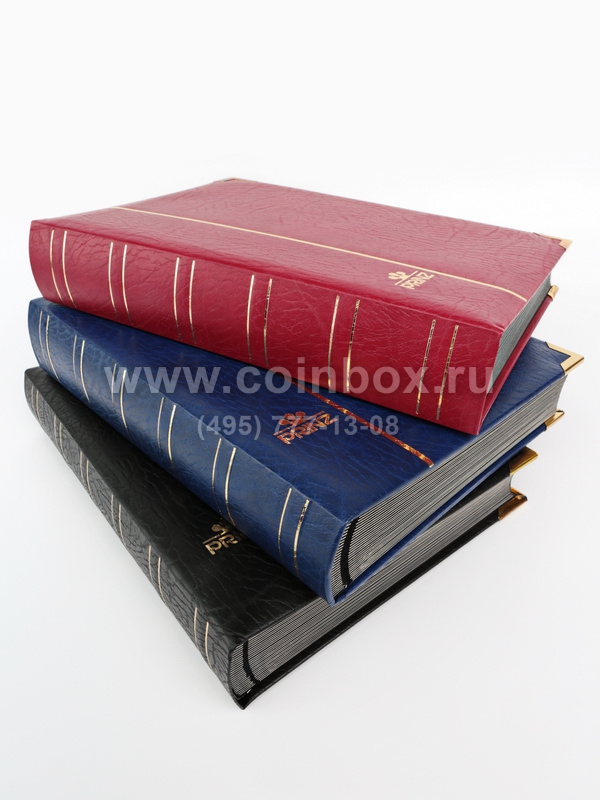 Ватированная (мягкая) обложка кляссера изготовлена из натуральной кожи. Позолоченные защитные уголки и тиснение золотом на корешке и обложке придаёт особенно элегантную ноту кляссерам серии ROYAL от компании Prinz.
