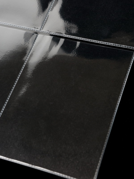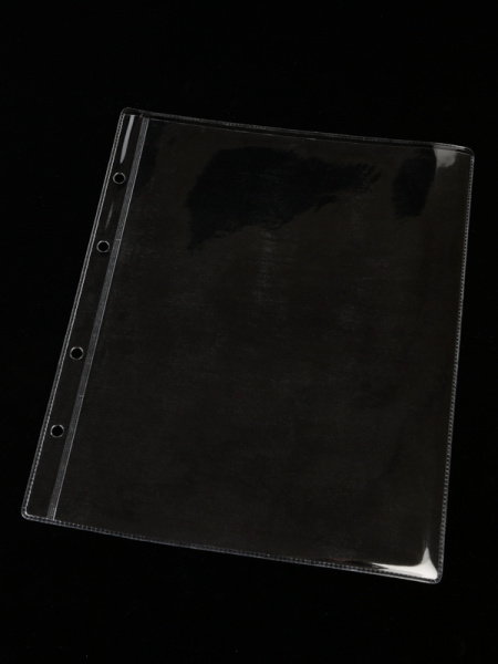 Лист формата ОПТИМА (Россия) из прозрачного пластика для хранения банкнот, документов, открыток и других предметов коллекционирования. Открывается по короткой стороне сверху.