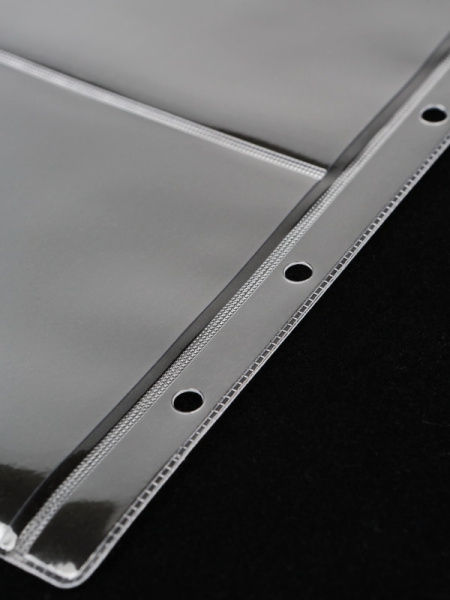 Лист формата ОПТИМА (Россия) из прозрачного пластика для хранения банкнот, документов, открыток и других предметов коллекционирования. Открываются по короткой стороне сверху.