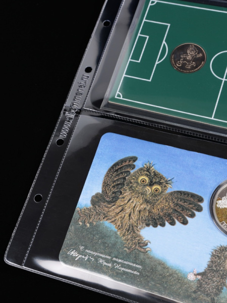 Листы формата ОПТИМА (Россия) из прозрачного пластика для хранения банкнот, документов, открыток и других предметов коллекционирования. Открываются по короткой стороне сверху. Листы серии Standart. Упаковка из 10 листов.