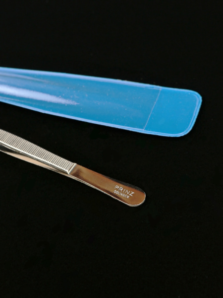 Нумизматический пинцет из нержавеющей стали (115 мм) с защитным покрытием на кончиках. Lindner, 2015