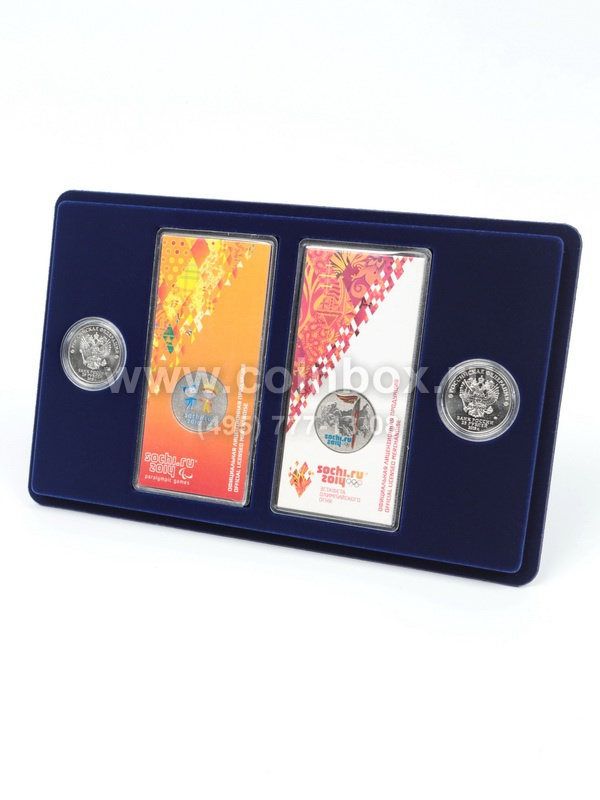 Планшет подходит для хранения 2 обычных монет 25 рублей в капсулах Leuchtturm и 2 цветных монет 25 рублей в блистере (в специальном исполнении)
